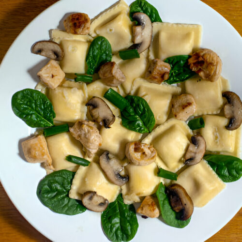 - 12 ounces mushroom ravioli fresh or frozen