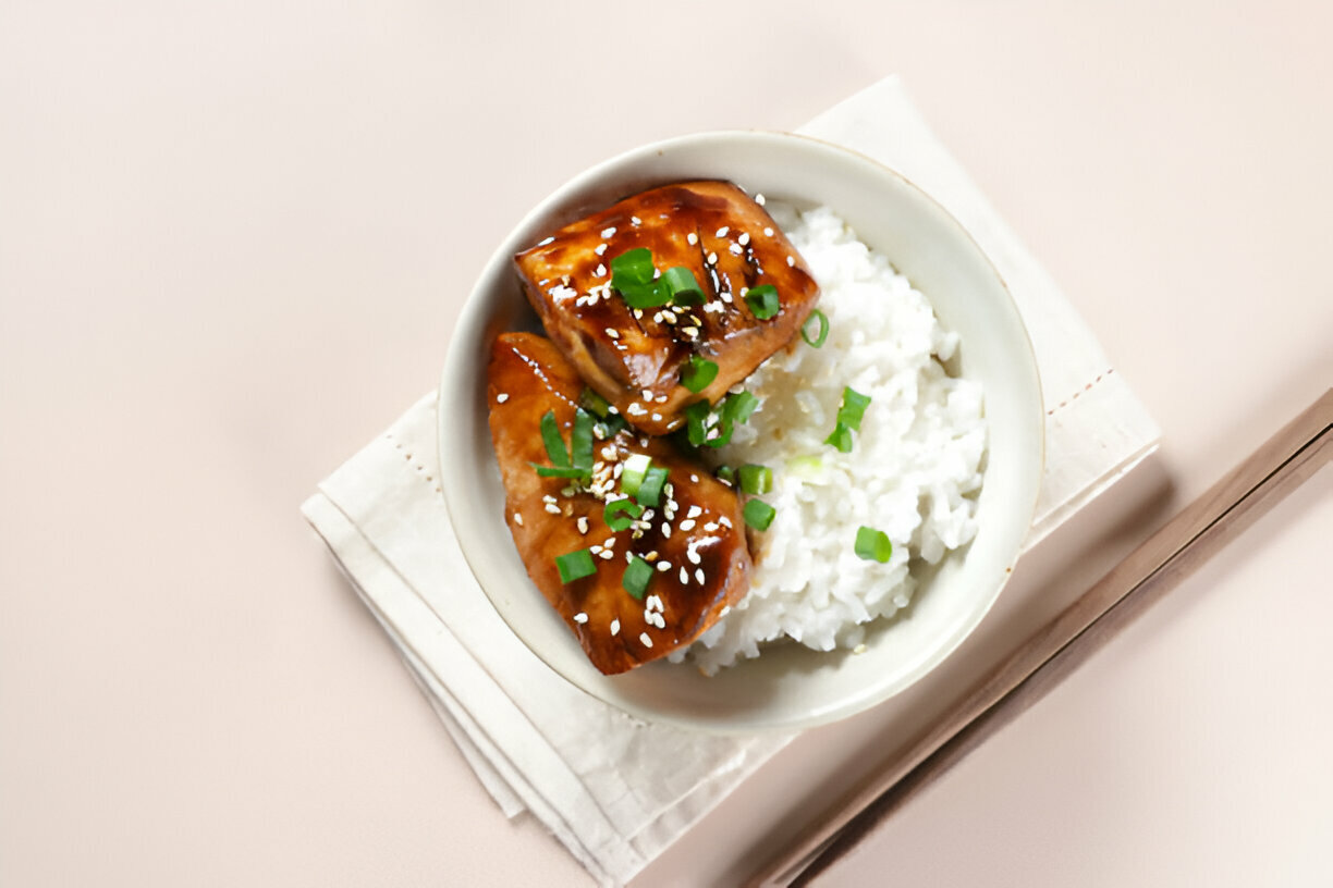Air Fried Teriyaki Salmon Bites Rice Bowl