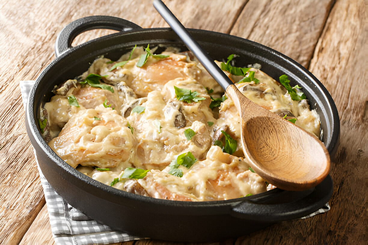 Chicken and Mushroom Skillet in Creamy Asiago Mustard Sauce