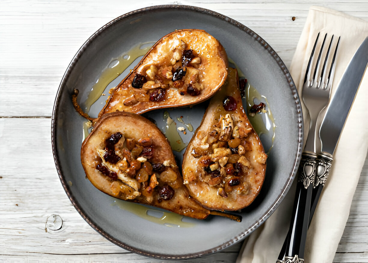 Baked pеars is a fun dish that really shows the fall in a bowl , it warm you up and taste real good as a dessert or even as a fancy app . When you bake pears it make them extra sweet and soft , kinda like a little pillow of flavor . Top them with feta cheese that is creamy and salty , drizzle honey all over and sprinkle cranberries for a tangy pop , and you got a sweet–salty treat that's pretty amazing .