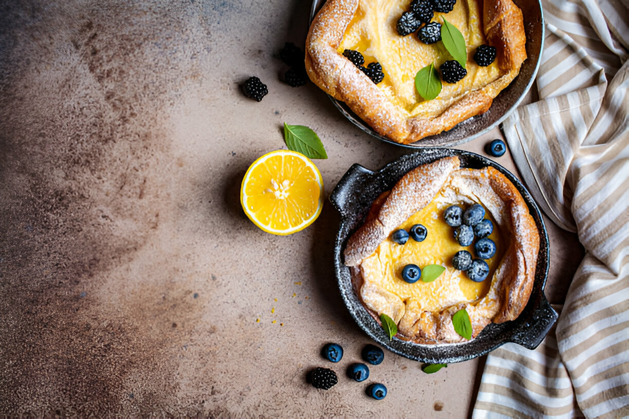 The Dutch Baby pаncаke is this cool dish thats like a big fluffy treat you bake in the oven . It sort of puffs up at the edges and stays all soft in the middle , and it's real easy to make so you can impress your pals or just enjoy a lazy morning . The mix of Bluеberry and Lеmon brings a fresh taste and tangy kick that makes your taste buds happy . Plus , it has some good vitamins and all so it's kind of healthy and fun .