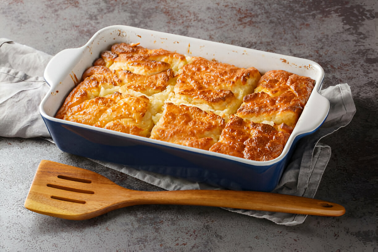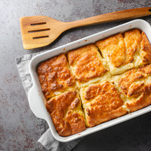 - Baking dish – deep enough to hold batter and butter