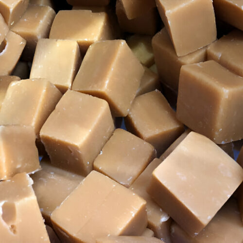- Once cooled, cut the fudge into 16 squares using a sharp knife.