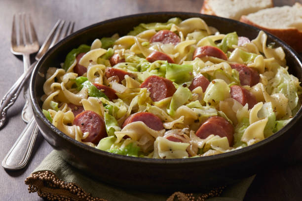 The mix of soft cabbage and meaty kielbasa creates a taste that’s smoky, savory , and a little sweet . The textures play off each other too : tender sausage with crunchy cabbage makes each bite fun . It often reminds people of family meals and cozy nights in .