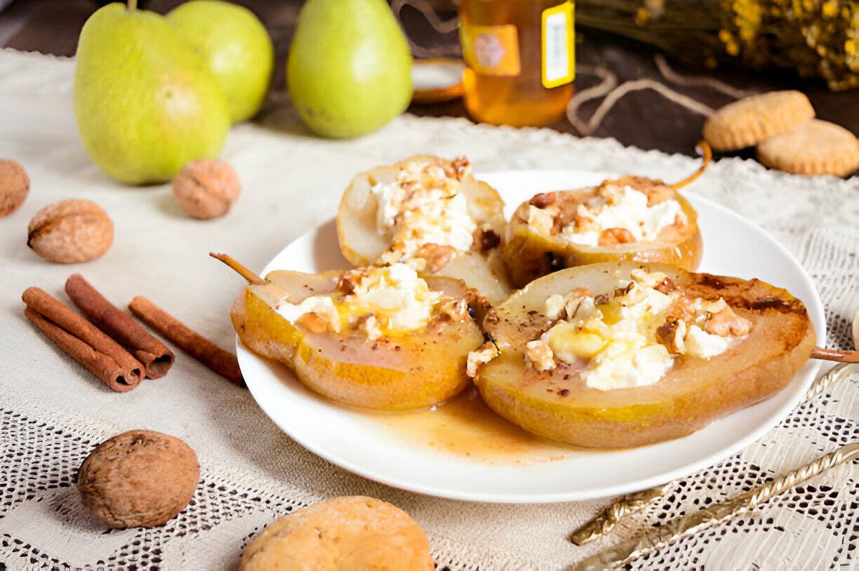 Baked Pears with Cream Cheese and Walnut Topping Recipe