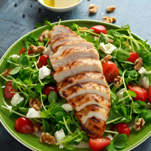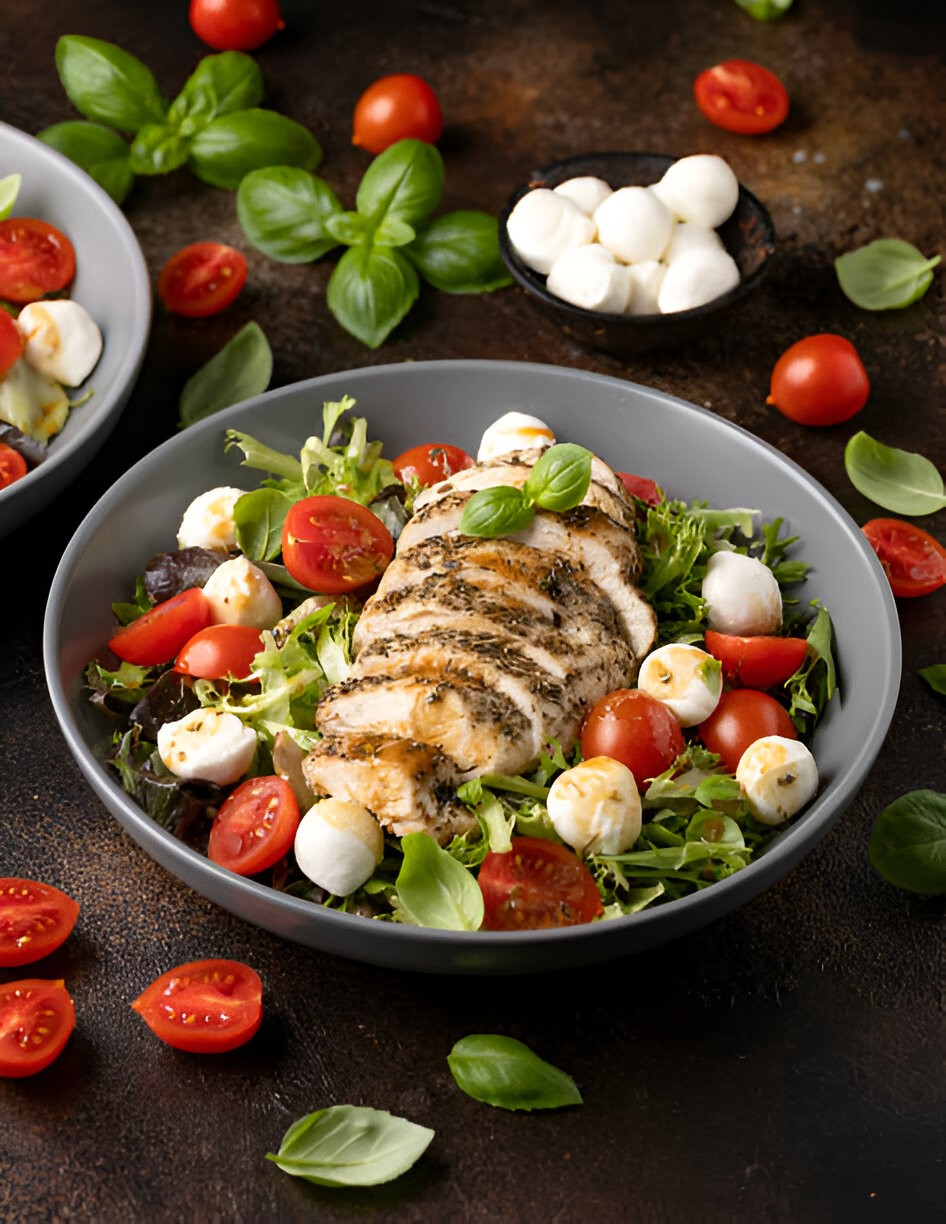 Chicken Caprese Salad are a fun and fresh meаl . It mix classic Italian taste with warm grilled chicken . You get mozzarella , ripe tоmatoes , and basil all drizzled with olive oil and balsamic . The chicken makes it filling and tasty for any time of day .
