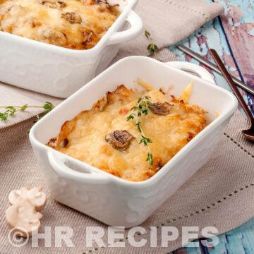 - Let the casserole rest for 5 minutes before serving. Garnish with fresh basil if desired.