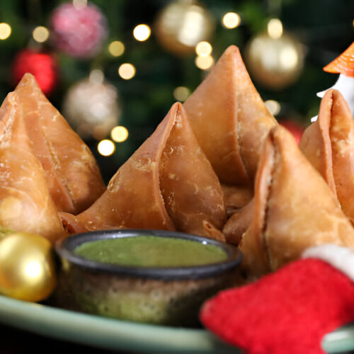 - Vegetarian vs. Non-vegetarian : Veg samosas got potatoes , peas or paneer ; chicken samosas use minced chicken and spices .