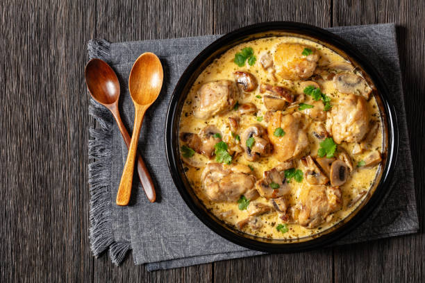 - Creamy Chicken and Mushroom: Mushrooms and chicken in a savory cream sauce — perfect over pasta .