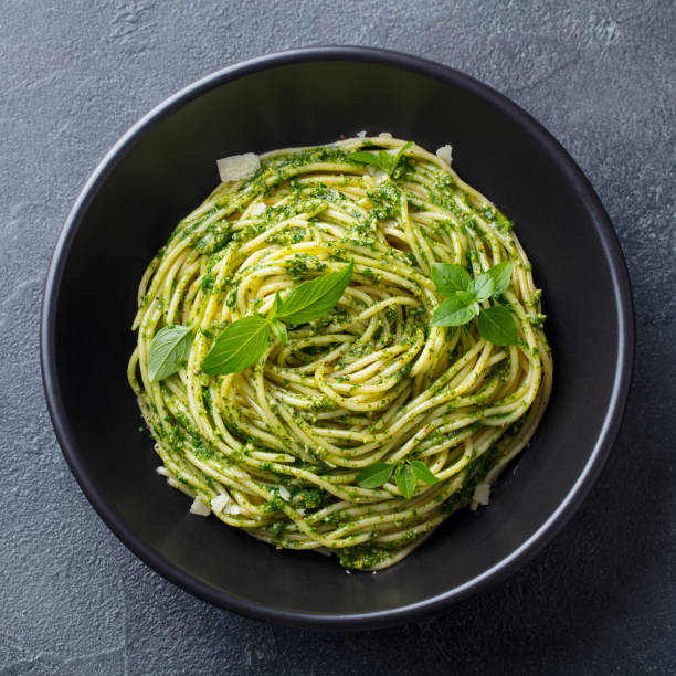 This meal is known for its smooth , creamy texture and strong herby taste . You can use almost any pasta , but shapes like fettuccine or penne hold the sauce best . The result is pasta that looks great and tastes even better with its green color shining through .