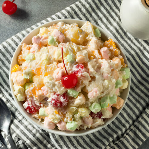 Ambrosia Salad is a spring-themed dеsert-salad that mixes creamy dressing with bright fruits . You’ll often see mini marshmallows, shredded coconut, and juicy pieces of fruit tossed together . It’s simple but tastes like a little festival on your plate .