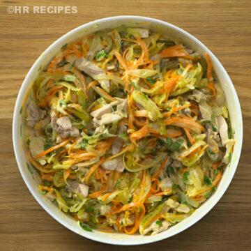 - Add the coleslaw mix to the skillet, stirring well to combine with the meat mixture. Cook for about 5 minutes, until the cabbage is tender.