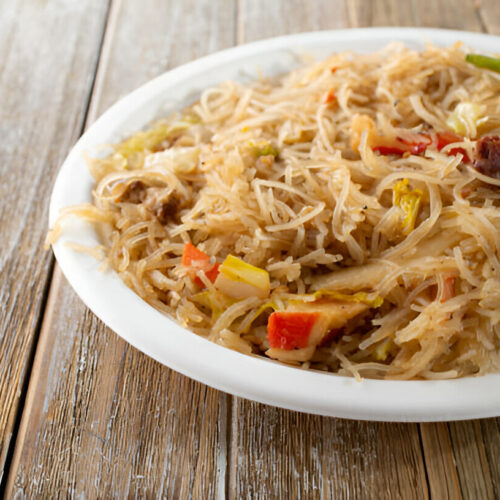 - 8 oz rice noodles (Bihon or Sotanghon) Soak in warm water until soft.
