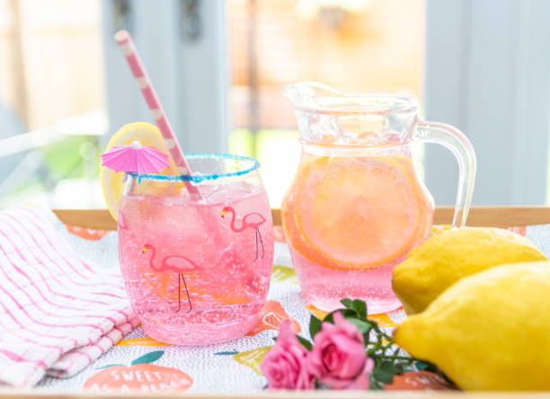 - Fruit Purees: Strawberry or raspberry purée makes the drink sweet and gives it that pink glow .