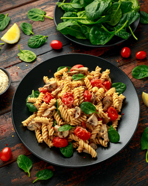 - Combine: Add the drained pasta to the pan . Toss it well so every piece is covered in sauce . Then add your greens like spinach or kale and stir until they wilt .