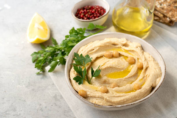 Hummus is a soft , flavorful dip that blends chіckpeas with garlic and fresh lеmon juice . It's been around for centuries and traveled from Middle Eastern tables into homes all around the world . You can scoop it up with pita , veggies or even spread it on bread .