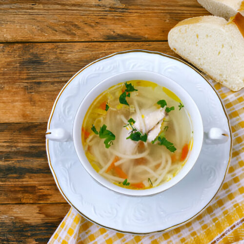 - Add the chicken breasts to the pot and pour in the chicken broth. Bring to a simmer.