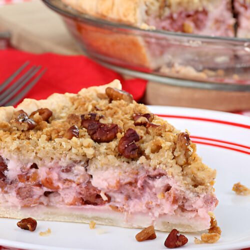 - Pour the pecan mixture over the cream layer in the pie crust, spreading it evenly.