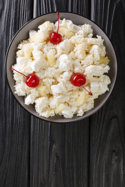- Transfer the Pineapple Fluff Salad to a serving dish and cover with plastic wrap.