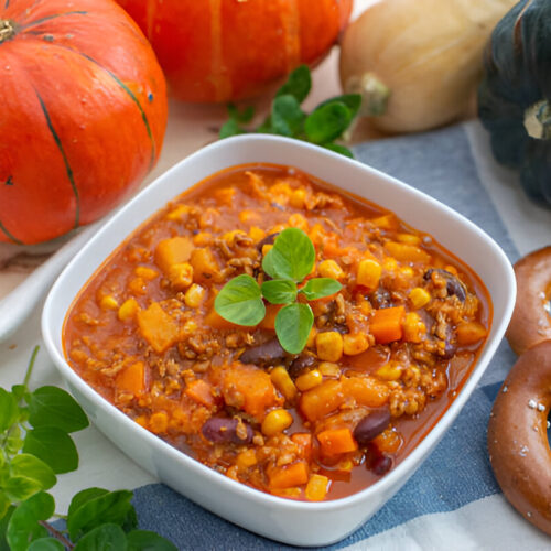 Pumpkin chili is a savory dish that joins the comforting taste of classic chili with the creamy sweetness of pumpkin . It started when home cooks in parts of America tried new ideas with fall produce . This mix creates flavors that feel familiar but still fresh . The pumpkin adds a twist that makes this chili stand out from regular versions .
