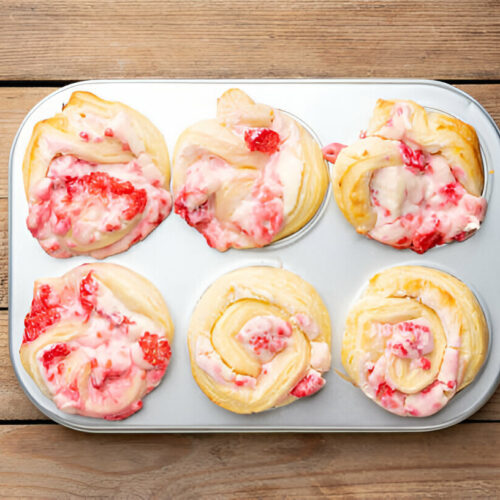 Cinnamon rolls were always a favorite snack at home , soft and gooey they kinda melt in your mouth . With that sweet smell of cinnamon floating around the kitchen you can’t help but smile . And when you fold in bright raspberries and a lemon twist it gets even better , like a little party for your taste buds .