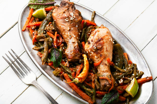 - Roast in the preheated oven for 30 minutes, or until the chicken reaches an internal temperature of 165°F (75°C) and the vegetables are tender and slightly caramelized.