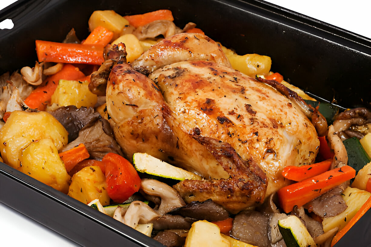- Once the cooking time is complete, carefully remove the chicken and vegetables. Set them aside on a serving platter.
