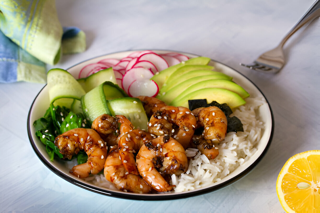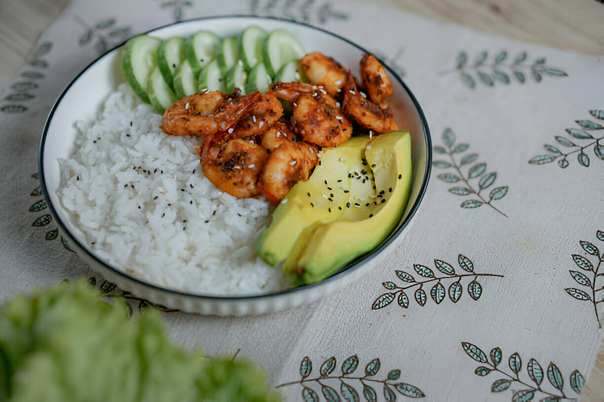 Health Benefits of Spicy Shrimp and Avocado Rice Bowl