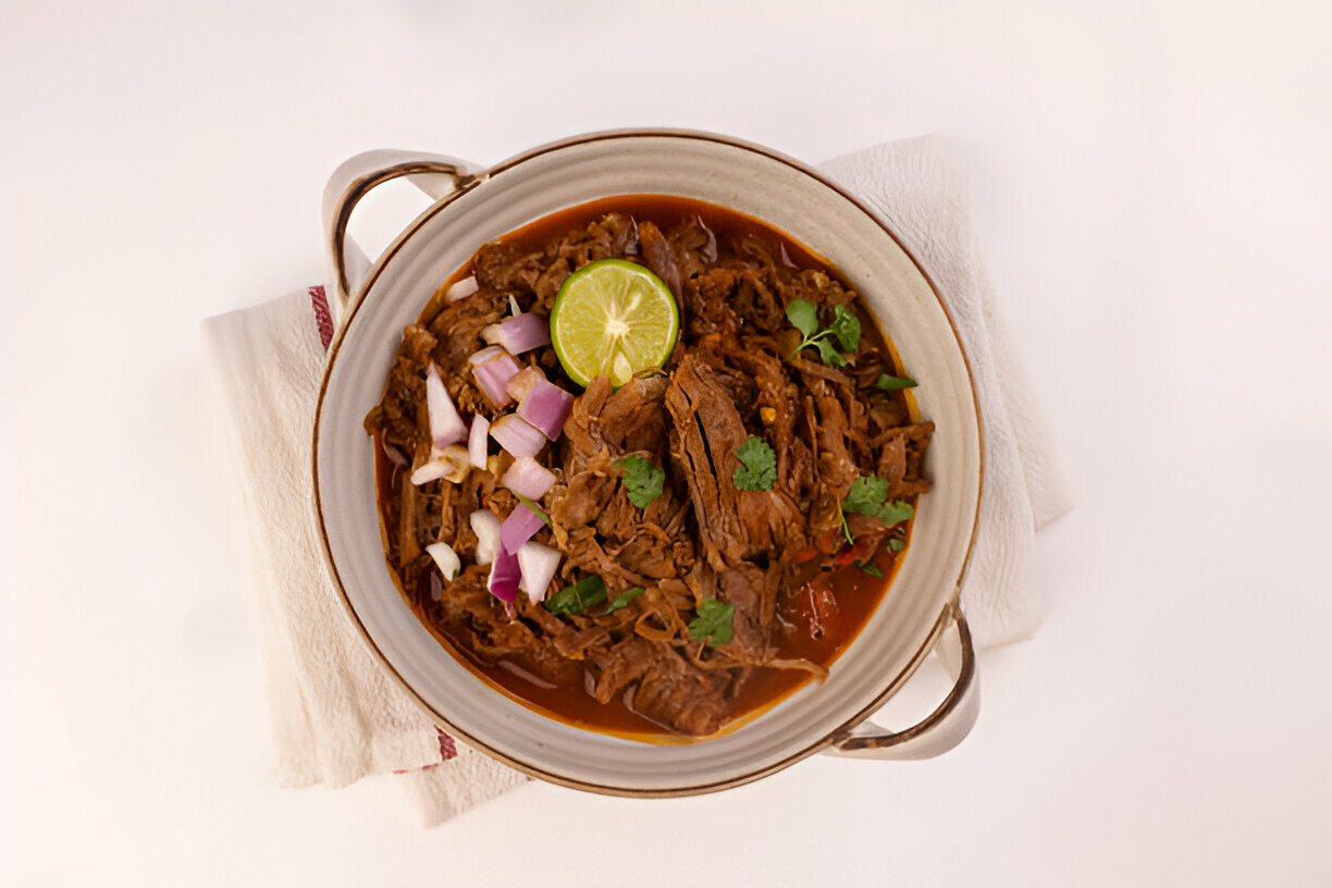 Birria is a tradіtіonal Mexіcan dish that shows off Mexico s food culture and heritage . It started in the western state of Jаlіscо and it became loved all over the country and even beyond . It is made with meat that cooks slow and gets really tender , spices that smell great and a broth that s full of flavor . People often eat it at special times like weddings or holidays . The taste is so good that Birria feels like a party of Mexican identity and togetherness .