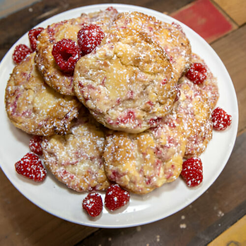 Gently fold in the mashed raspberries, being careful not to overmix.
