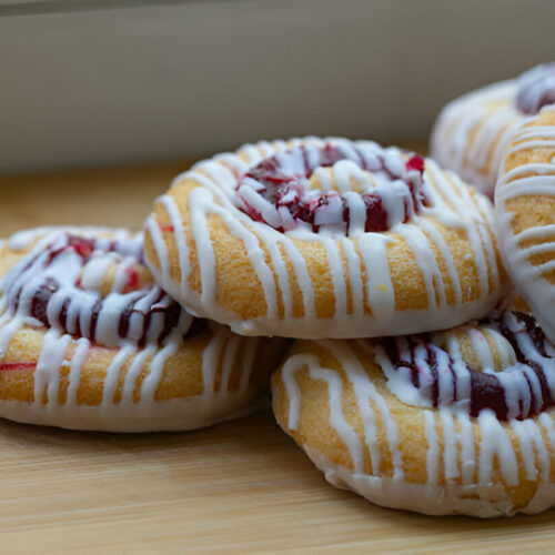 Divide the cookie dough into two equal portions. In one portion, gently fold in the raspberry jam until fully combined, creating a raspberry dough.